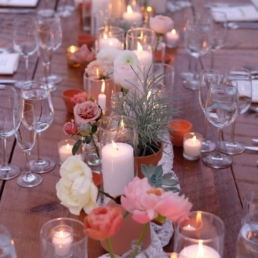 "I used your votives and pillars at my daughters wedding and they were absolutely amazing and worth every penny. No worries for the asthma sufferers in our family or those sensitive to toxins. The 6" pillars burned for 7 hours and had no drips. The votives burned so nicely in that time and each one still has at least 5 hours burn time left. You should be very proud of your company that you have made a healthy choice for consumers! It was great to not worry about our white lanterns being soiled with black soot. Very, very impressed. Thank you so much!" ~Heidi Hammond