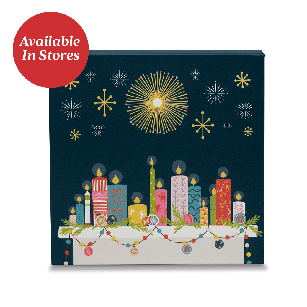 Give the gift of natural light and clean holiday scents with this limited edition set of four “Winter of Love” 2-ounce holiday scented candles. The sturdy and reusable custom-made gift box features a magnetic closure and festive graphics designed by our own Sarah Callicott. The four scents (Noble Fir, Orange Pomander, Vanilla Chai, and Winter Solstice) will fill the air with the Christmas spirit and help keep the house cozy during the long nights of winter.
